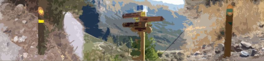 In between the main signposts there are what I call “finger posts”, the photos show a “yellow” and “green” finger post. These usually have an angled top to indicate the direction you should head, but usually only in one direction, all routes are possible in both directions. There are no numbers on these posts and in my opinion are too infrequent. There are also on occasions a yellow or green painted stripe on a rock to help your navigation.